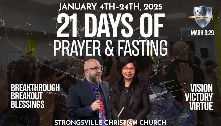 No. STRONGSVILLE CHRISTIAN CHURCH is one of many churches around the world participating in 21-day fasts. Revival Today, Pursuit, and numerous full-gospel churches worldwide also fast for 21 days in January.